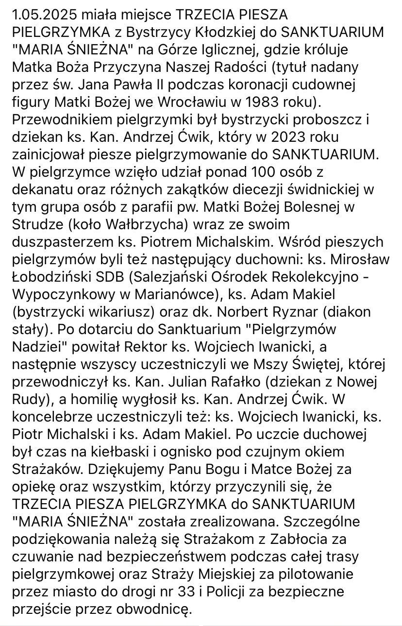 Dziękujemy bardzo naszym księżom, księdzu z Marianówki, ks. Kustoszowi Sanktuarium, OSP z Zabłocia oraz wszystkim ludziom dobrej woli za organizację tak wspaniałego wydarzenia.