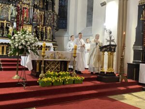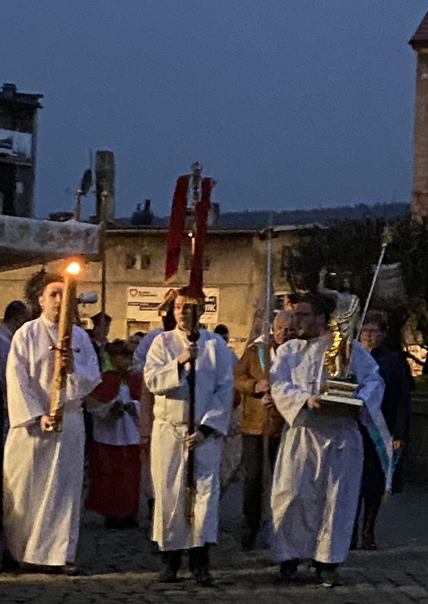 Opublikowane w przez 31 marca 2024 Niedziela Zmartwychwstania Raniutko, już o 6.00 uczestniczyliśmy we Mszy Rezurekcyjnej poprzedzonej uroczysta procesją wokół kościoła.