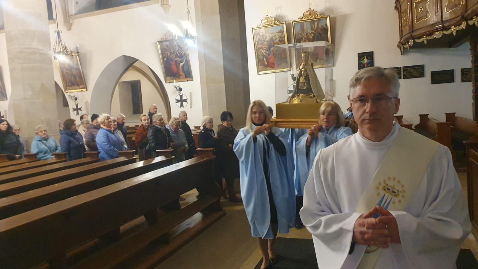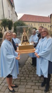 W ramach diecezjalnej peregrynacji cudowna figura Matki Bożej Strażniczki Wiary Świętej z Barda zawitała do dekanatu Bystrzyca Kłodzka. Przedstawicielki Róż Rózańcowych wniosły figurkę Matki Bożej do bystrzyckiej świątyni jubileuszowej. Następnie wszyscy zgromadzeni uczestniczyli w konferencji i różańcu poprowadzonym przez o. Piotra Wiśniewskiego CSsR kustosza sanktuarium z Barda oraz uroczystej Mszy Świętej koncelebrowanej, której przewodniczył o. Piotr. Po Eucharystii wierni wzięli udział modlitwie wstawienniczej oraz mieli możliwość podejścia do cudownej figury Matki Bożej, aby osobiście zawierzyć siebie i swoich bliskich Strażniczce Wiary Świętej. Dziękujemy o. Piotrowi, redemptoryście za przewodniczenie modlitwom oraz wszystkim, którzy wzięli udział w tym wydarzeniu.