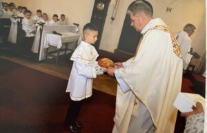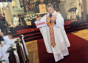 Podczas Mszy Świętej ks. Adam pobłogosławił modlitewniki, które mają być pomocą w modlitwie dzieci oraz ich przygotowaniu do Pierwszej Spowiedzi i Pierwszej Komunii Świętej.